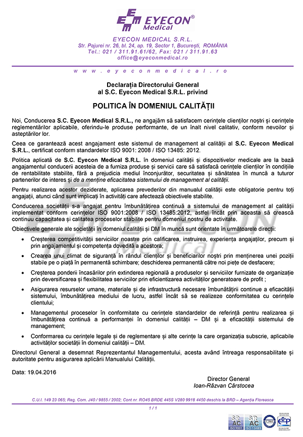 Misiunea EYECON MEDICAL este de a asigura performanta medicala si confortul personalului si al pacientilor, la cele mai inalte standarde europene,