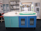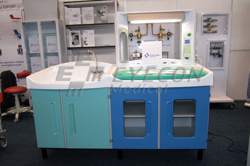 Unit infasat nou-nascut cu chiuveta incorporata, lampa si saltea incalzita;