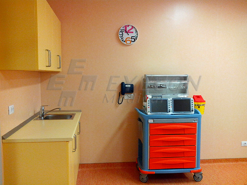- dotari: usi batante cu protectie radiologica, paturi electrice, sistem separare pacienti, lavoar cu un post, trolii cu cos pentru electrocauter, trolii complete pentru medicatie, spalator plosti si urinale cu unitate de golire;