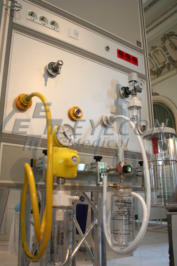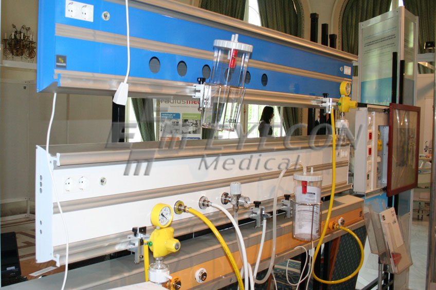 Consola de perete - EVA, destinata saloanelor pentru pacient, prevazuta cu prize si accesorii pentru gaze si fluide medicale (Nassetti);