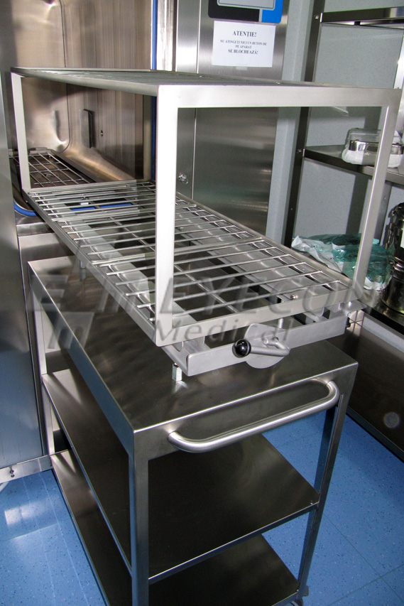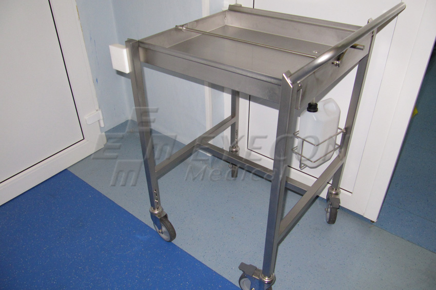 masa Mayo din inox pentru instrumentar, mobila, cu tava detasabila;