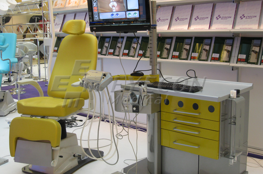 EUROCLINIC: fotoliu ginecologic cu 2 motoare Gynex 2; scaun pentru medicul specialist; unit oftalmologic OTOCOMPACT Steel cu scaun pacient; fotoliu pentru dializa;