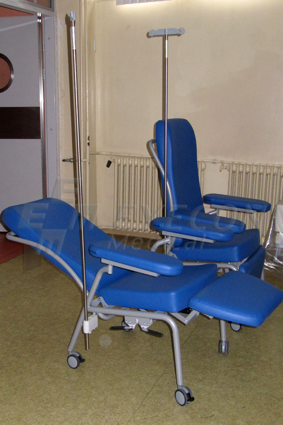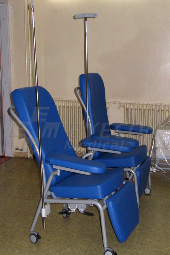 scaune de recoltare - scaune transport pacienti prevazut cu sectiune picioare si spatar, miscari separate, sistem de blocare, manere laterale, perfuzor cu 2 carlige si 4 roti cu sistem de blocare;