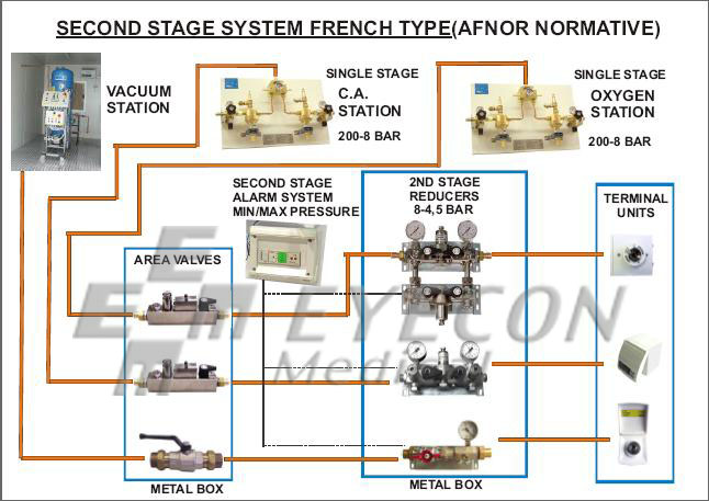 Instalatie completa pentru producerea / distributia gazelor medicale realizata conform ultimelor normative in vigoare (ISO 7396-1, ISO 7396-2).