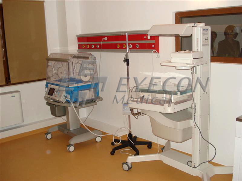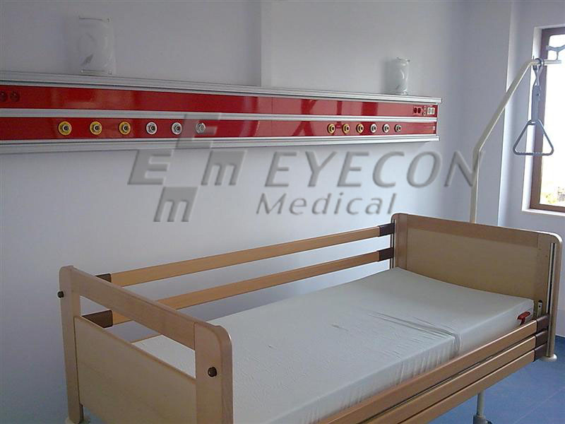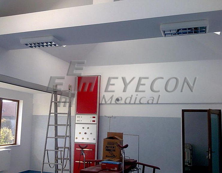 un salon postoperator avand de asemenea o consola dubla de perete tip "CARE";