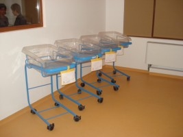 un salon de nou-nascuti avand o consola de perete pentru 2 bebelusi;