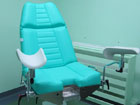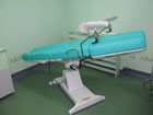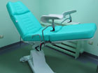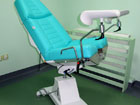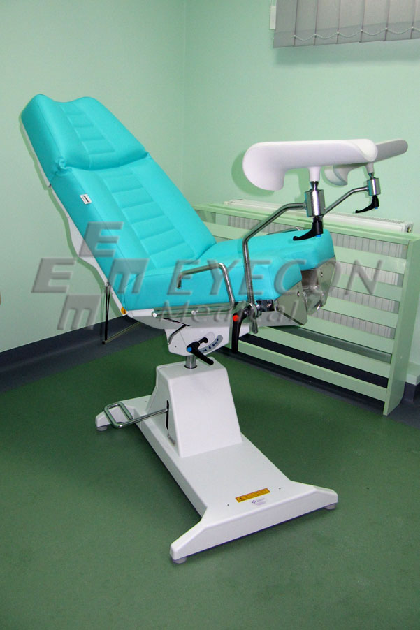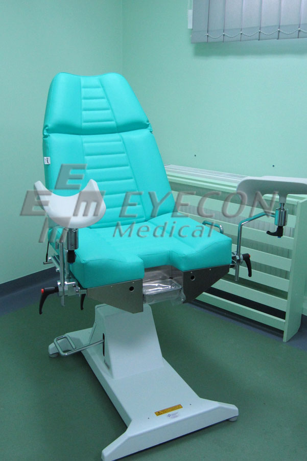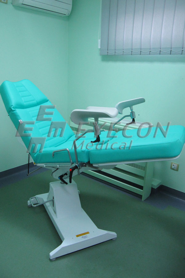 Fotoliu ginecologic cu baza de sustinere alba si tapiserie vernil;