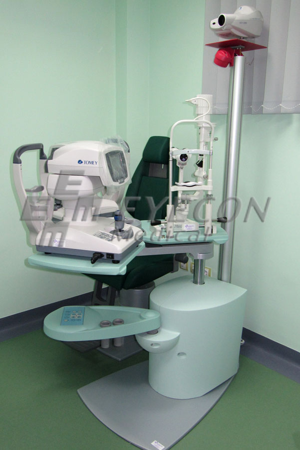 Unit oftalmologic echipat cu proiector de teste, biomicroscop, tonometru non-contact, autorefractokeratometru, trusa de lentile.