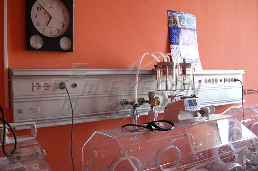 EYECON MEDICAL a echipat spitalul cu patru console cap-pat tip CARE, doua console cap-pat tip MINICARECARE, accesorii gaze medicale.