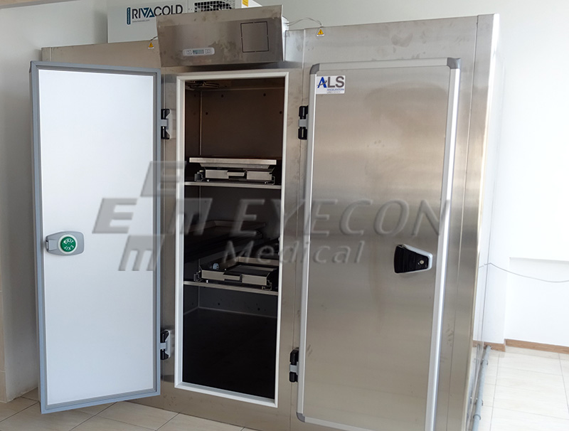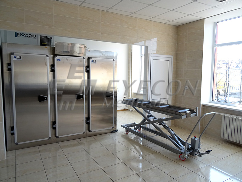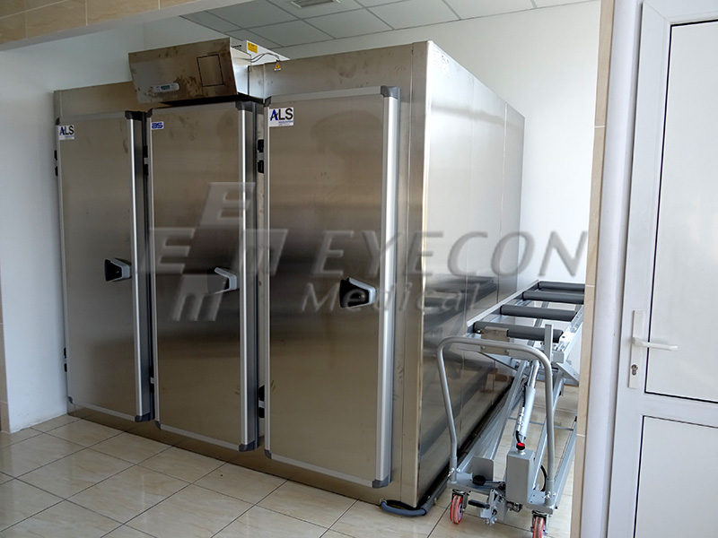 Frigider mortuar cu 3 usi configurat pentru 6 cadavre, cu panou de control cu microprocesor (HTWL);