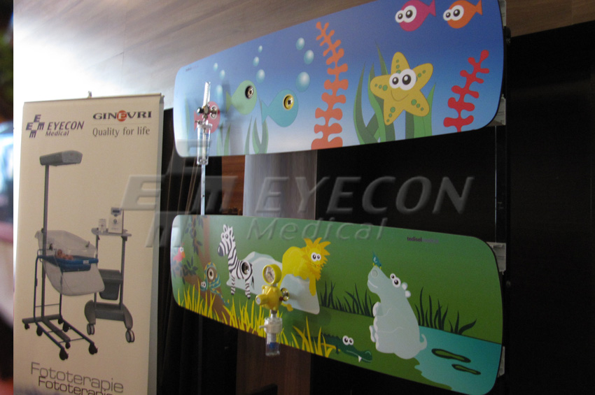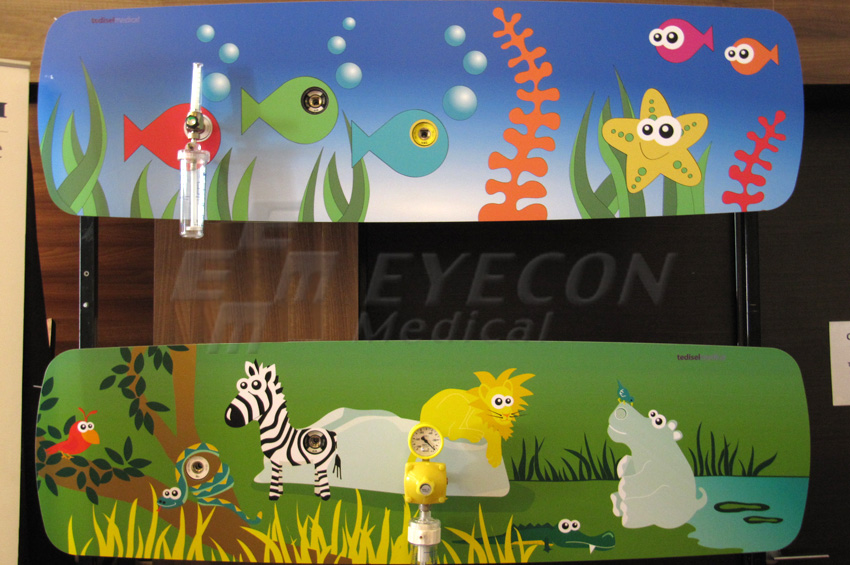 console gaze medicale (fiecare cu cate o priza de oxigen, aer comprimat si vaccum) pentru pediatrie, model Maya - desene Corallina si Akunamatata (Tedisel).