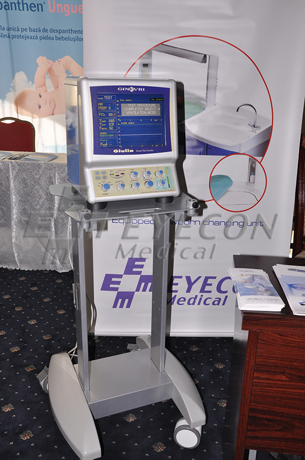 In standul de prezentare de la Murighiol, EYECON MEDICAL a adus in fata specialistilor prezenti Ventilatorul Neonatal Giulia, un echipament ce inglobeaza cele mai noi tehnologii si care poate fi folosit atat pentru prematuri si copii nascuti la termen, cat si pentru copii mici.