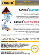 The KANMED Warming System with warm water mattress is a system specially designed for the premature new-born and it is successfully used in hospitals from all over the world. The system works on the principle of "mother cangaroo care" and recreates the characteristics of the natural environment in which the new-born is developing at the best parameters. The clinical studies showed the efficacy that the KANMED Warming System has in warming, maintainig the optimal temperature and ensuring high growth rate, which is equivalent to reduced hospitalisation time and care costs, together with considerably emotional benefits for mother and child.