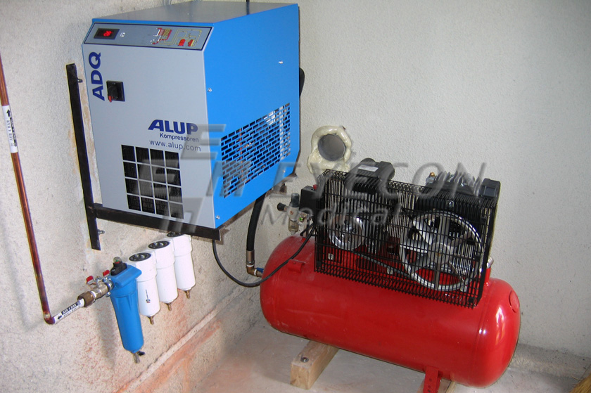 o statie de aer comprimat formata din compresor, uscator de aer si sistem de filtrare cu 4 filtre + filtru antibacterian.