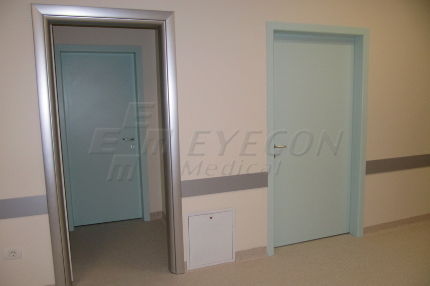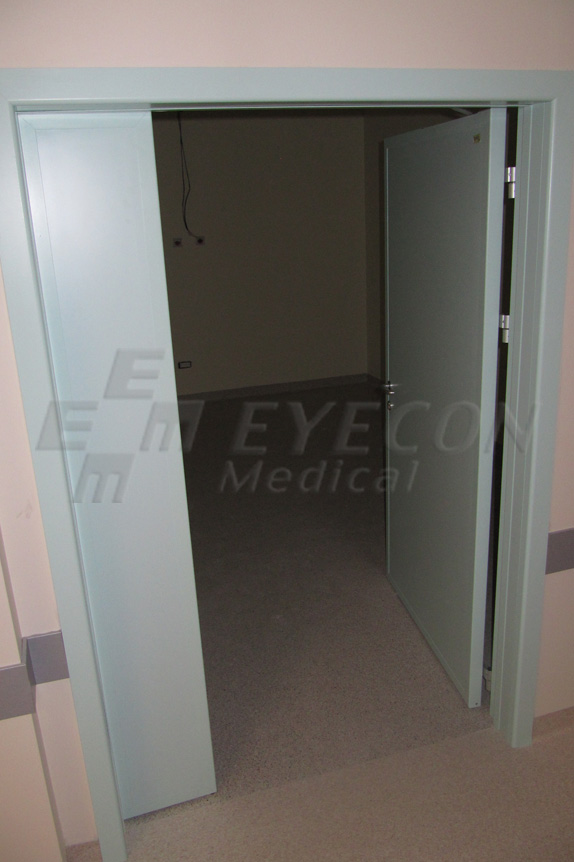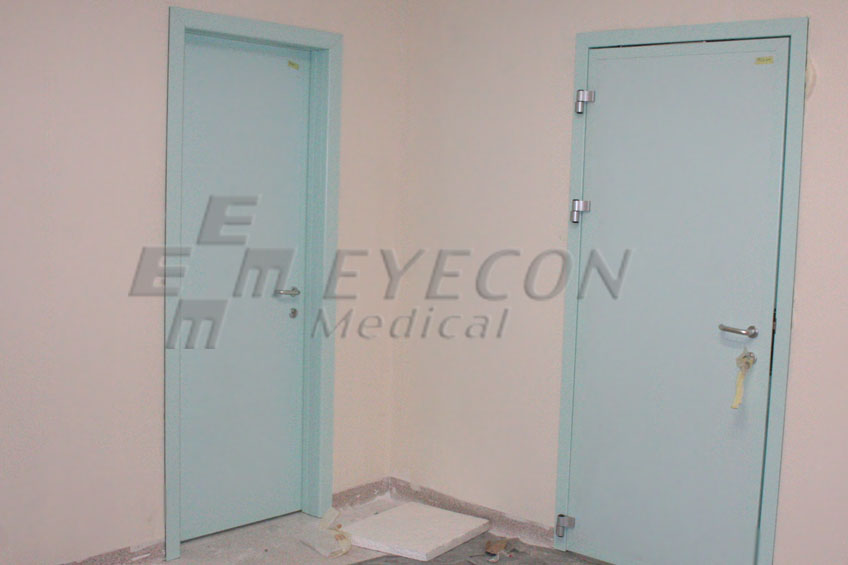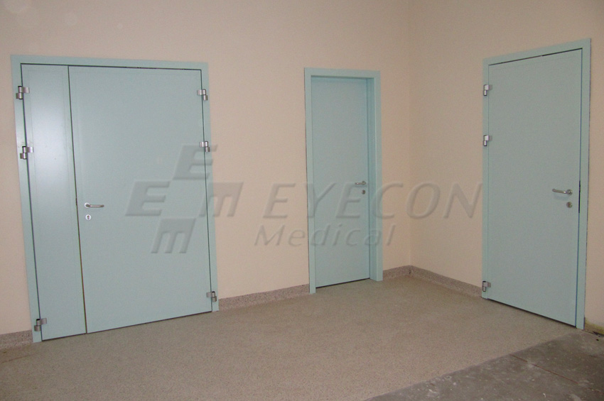 3 usi medicale din HPL (High Pressure Laminate), semiautomate, duble, batante, toate sunt prevazute cu protectie radiologica cu plumb (2 mm grosime);