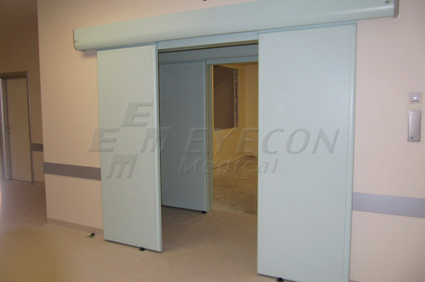 5 usi medicale din HPL (High Pressure Laminate), automate, duble, culisante; dintre acestea, una este prevazuta cu protectie radiologica cu plumb (2 mm grosime);