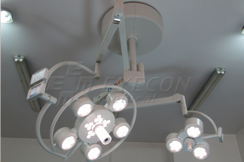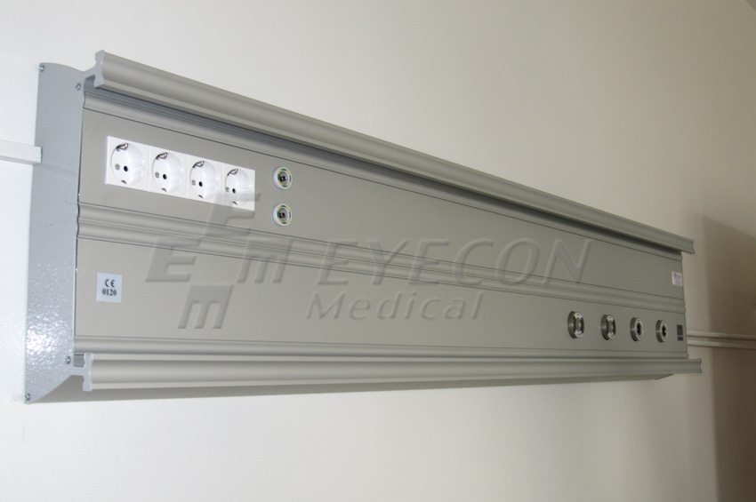 Console de gaze si fluide medicale pentru salile de operatii, prevazute cu prize de O2 si aer comprimat, prize de 220V si seturi oxigenator;