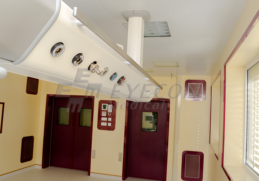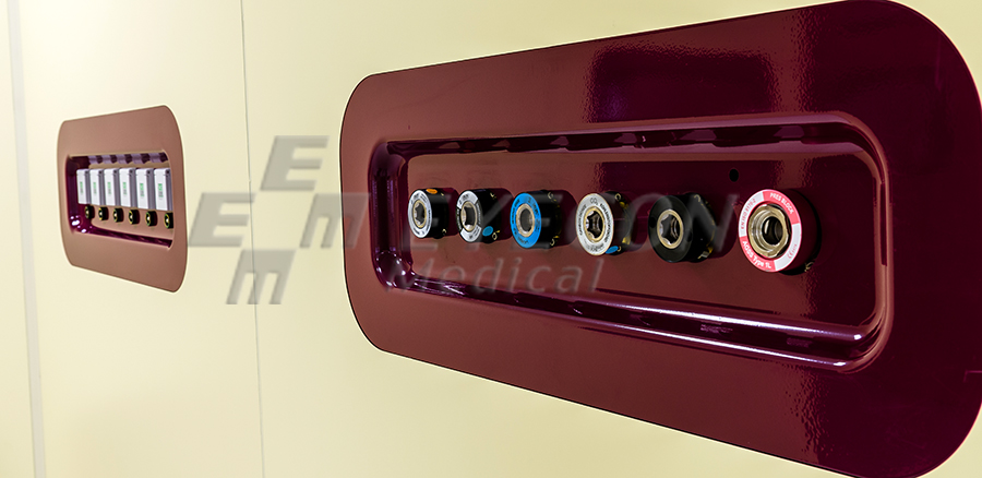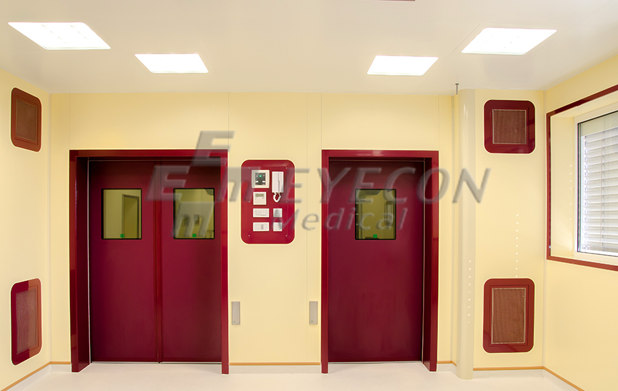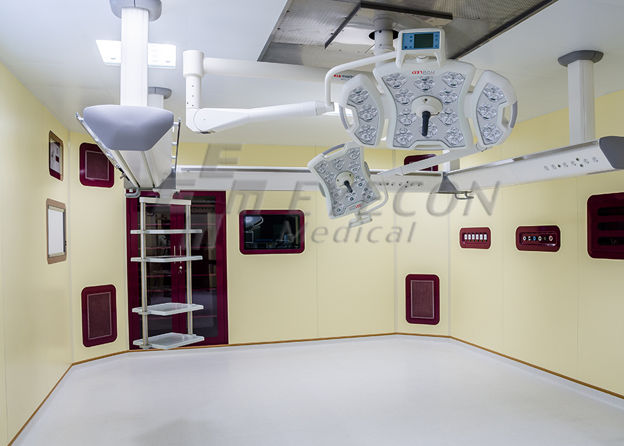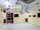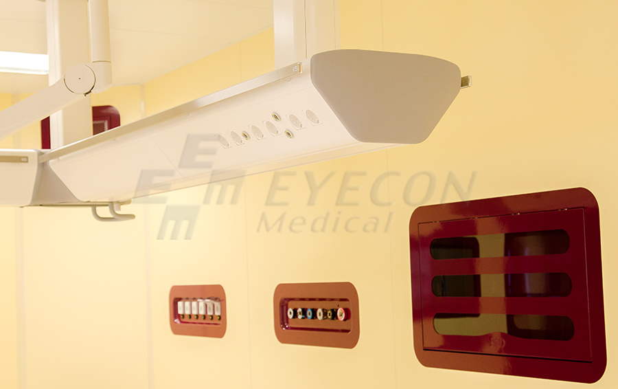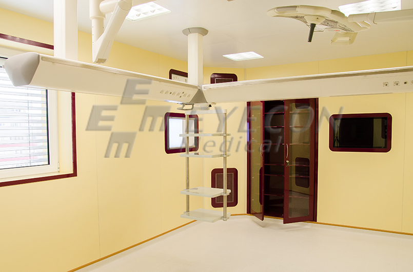 - Accesorii de montaj incastrate in peretii de camera curata si coplanar cu acestia: monitor LED full HD; negatoscop dublu; panou de control pentru centralizare comenzi de la echipamentele si sistemele integrate; dulap metalic pentru consumabile; dulap metalic pentru materiale, cu usi vitrate; ceas cu cronometru si telecomanda; panou cu prize electrice; panou cu prize pentru gaze medicale si prize pentru evacuare gaze anestezice; grile pentru evacuarea aerului viciat; interfon bidirectional;