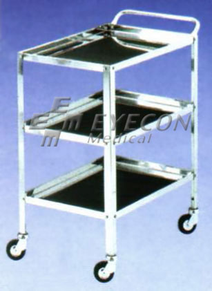 Troliu medical fabricat integral din otel inoxidabil (AISI 304), 3 polite (0.7 mm grosime) cu margini, 4 picioare (2 mm grosime),